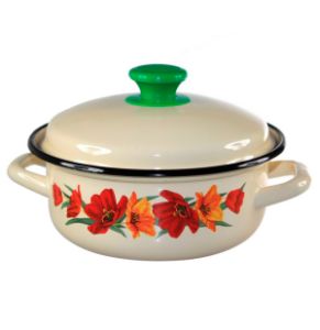 Кастрюля оснащена крышкой, выполненной из стали с эмалированным покрытием. Крышка плотно прилегает к краям кастрюли, предотвращая проливание жидкости и сохраняя аромат блюд.