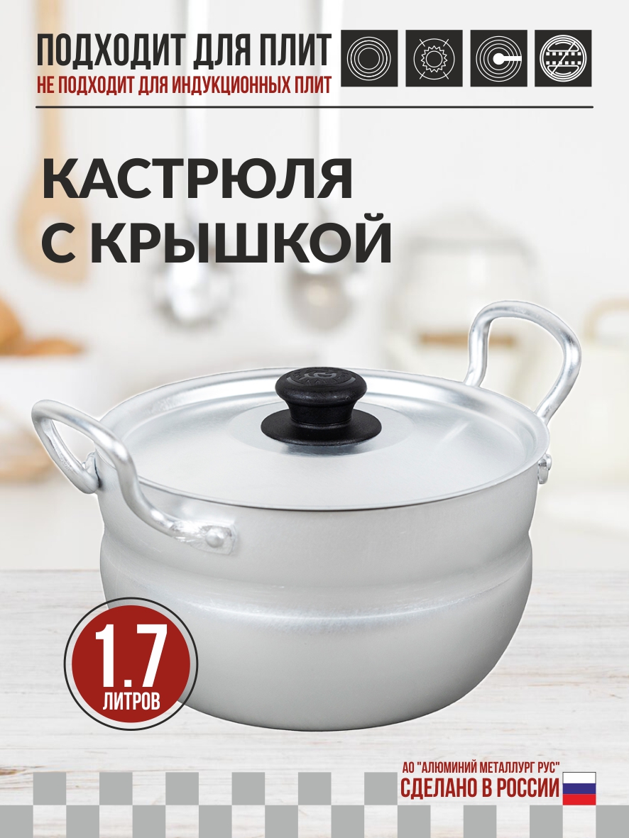 Кастрюля "Калитва" 1,7 л изготовлена из пищевого алюминия, выполнена с применением передовых технологий производства из высококлассных материалов.