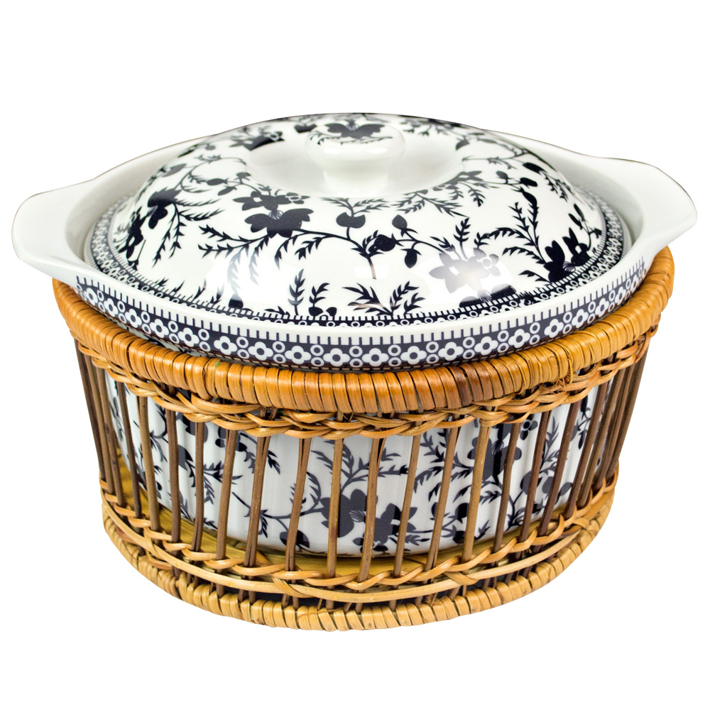 В комплект также входит плетеная корзинка из ротанга. Она защитит стол от повреждений и будет оригинально смотреться.