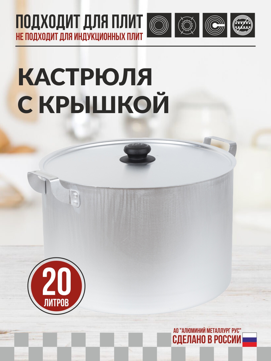 Кастрюля "Калитва" 20 л изготовлена из высококачественного матового листового алюминия.