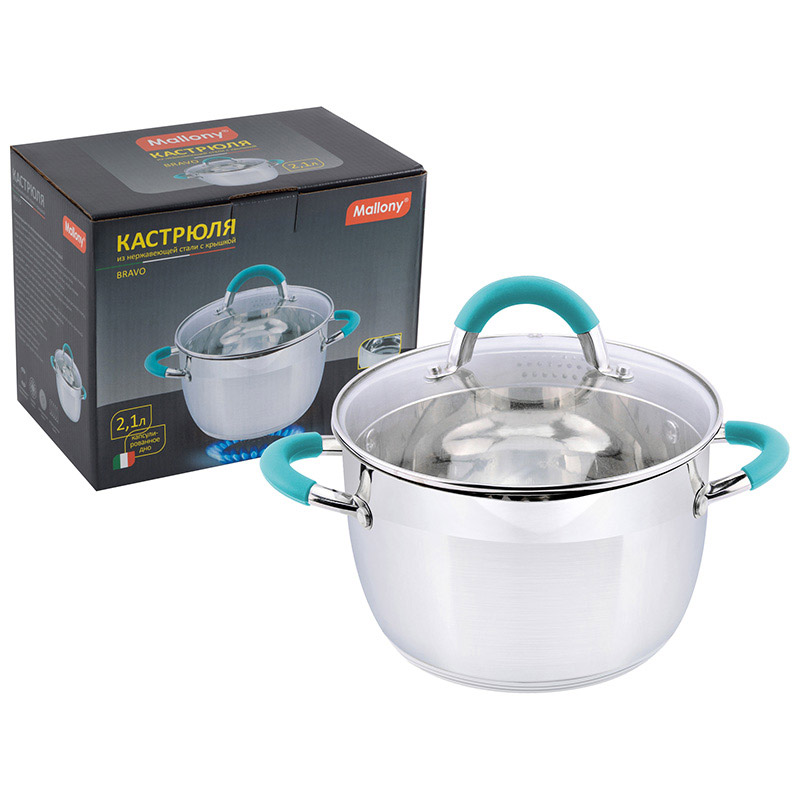 Кастрюля из нержавеющей стали с крышкой (тип стали - 201), крышка с дуршлагом для удобного слива жидкости.