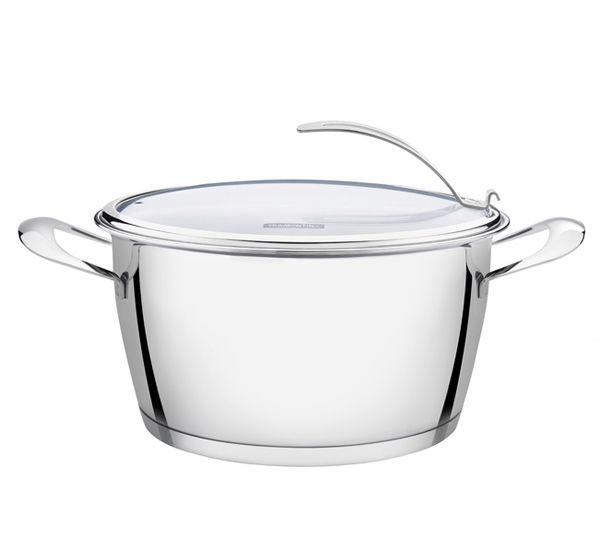 Кастрюля глубокая со стеклянной. крышкой 2, 2 л TRAMONTINA Ventura выполнена из нержавеющей стали в классическом стиле, а значит, он подойдет к любому столовому сервизу и послужит вам долгую службу. Прибор изготовлен из нержавеющей стали, высокого качества, благодаря чему сохраняют свои оригинальные черты, красоту и гигиеничность. Тройное дно (нержавеющая сталь + алюминий + нержавеющая сталь) равномерно распределяет тепло, обеспечивая более быструю и равномерную готовку, экономит энергию и долгое время сохраняет пищу горячей. Стеклянная крышка может поддерживаться на краю кастрюли, заставляя конденсированный пар на крышке сливаться в кастрюлю.
