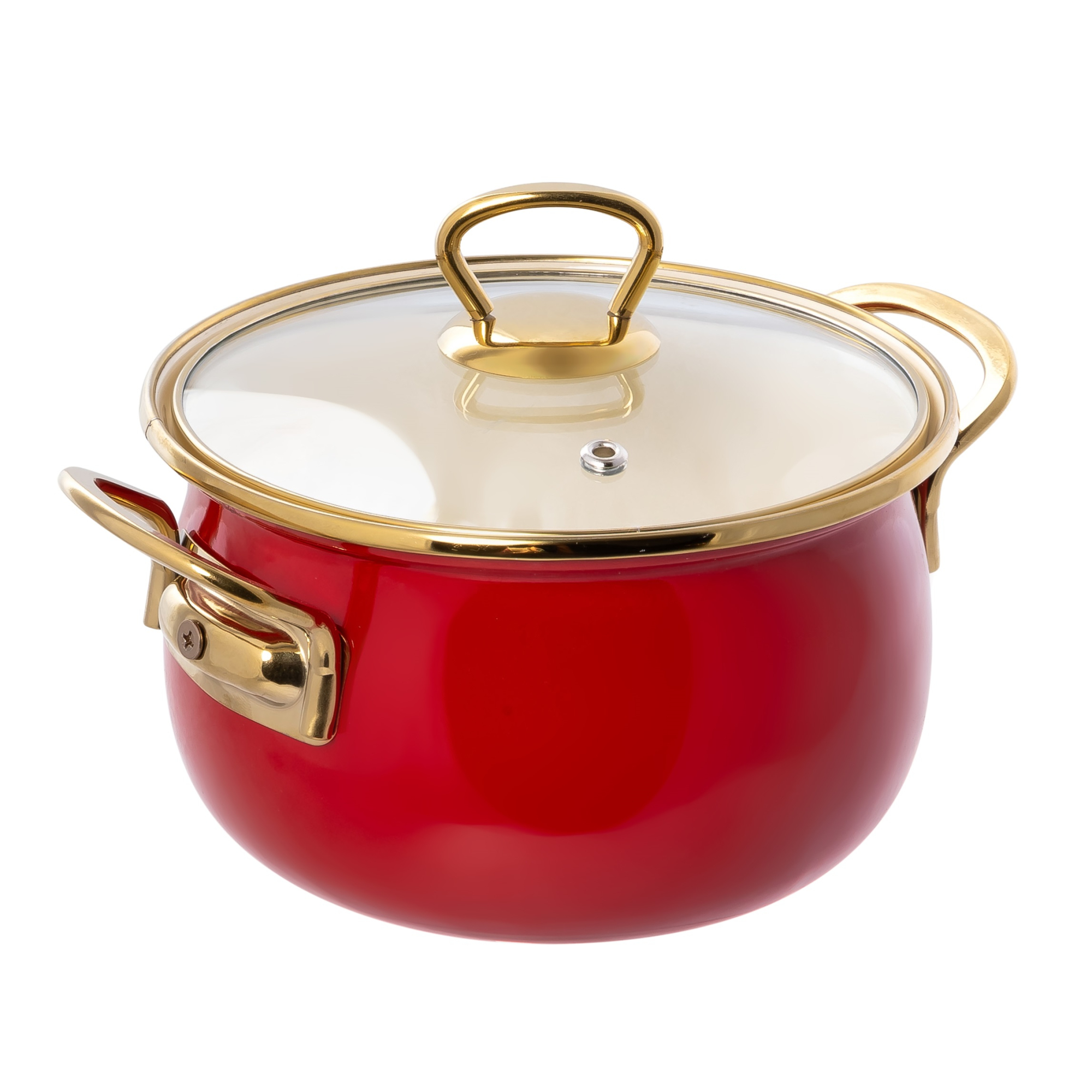 Эмалированная посуда серии «Палитра» сделана из высококачественной низкоуглеродистой стали, полученной способом холодного проката, покрыта 2-мя слоями жаропрочной эмали. Толщина стенок и дна кастрюли - 1 мм. Диаметр верха - 16см. Высота корпуса - 11см. Кастрюля укомплектована стеклянной крышкой с металлическим ободом и пароотводом. Ручки на крышке и корпусе – металлические, золотого цвета. Подходит для всех типов плит. Можно мыть в посудомоечной машине.