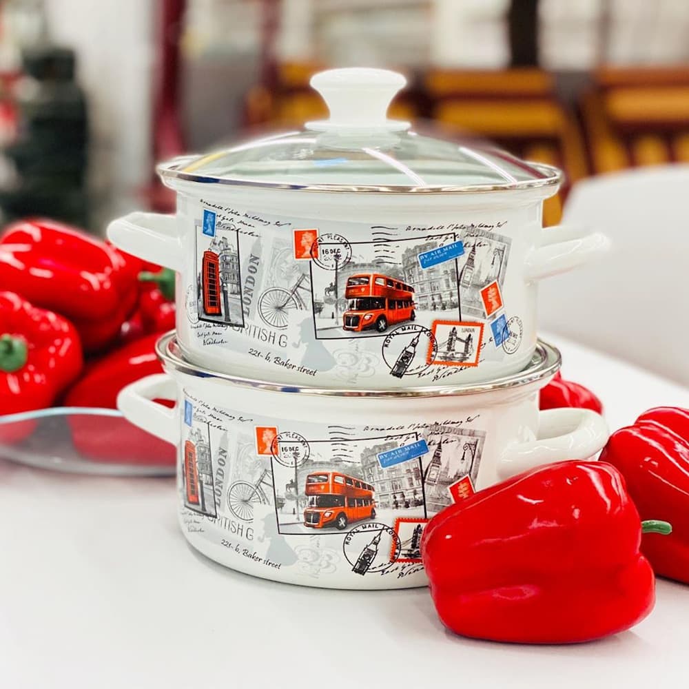 Кастрюля изготовлена из стали, покрытой высококачественной двухслойной эмалью.
