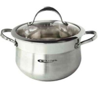 Кастрюля Катунь серии "Луиза" 2,5 л изготовлена из высококачественной нержавеющей стали. Благодаря прочному трехслойному капсульному дну, равномерно распределяющему тепло и прекрасно сохраняющему температуру, приготовление пищи происходит быстрее. Крышка из термостойкого закаленного стекла снабжена металлическим ободком для прочности и более плотного закрывания, а также пароотводом. Металлические ручки кастрюли прикреплены к корпусу методом клепочной фиксации, что обеспечивает минимальный нагрев, прочность и надежность.
