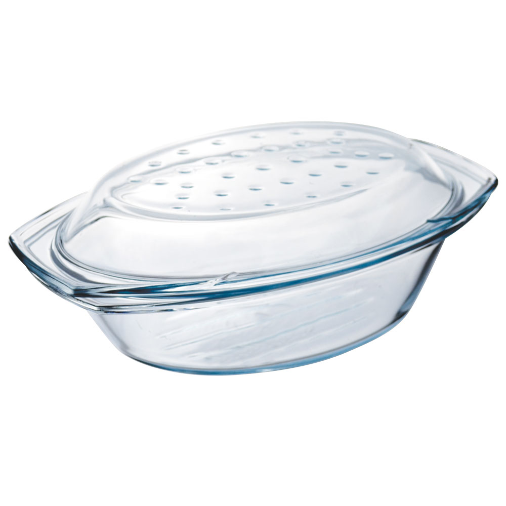 Стеклянная кастрюля (форма) с крышкой многоцелевого назначения. Подходит для приготовления пищи и хранения в духовых шкафах. Разрешено использовать в СВЧ-печах, холодильнике и морозилке.