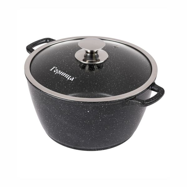 Антипригарная кастрюля Горница Гранит Induction изготовлена из пищевого алюминия без канцерогенных веществ.