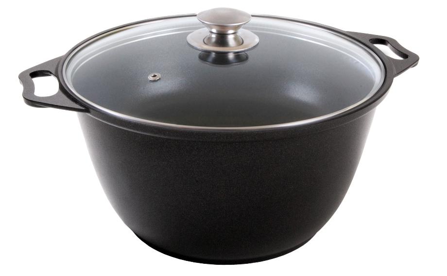 Кастрюля оснащена стеклянной термостойкой крышкой.
