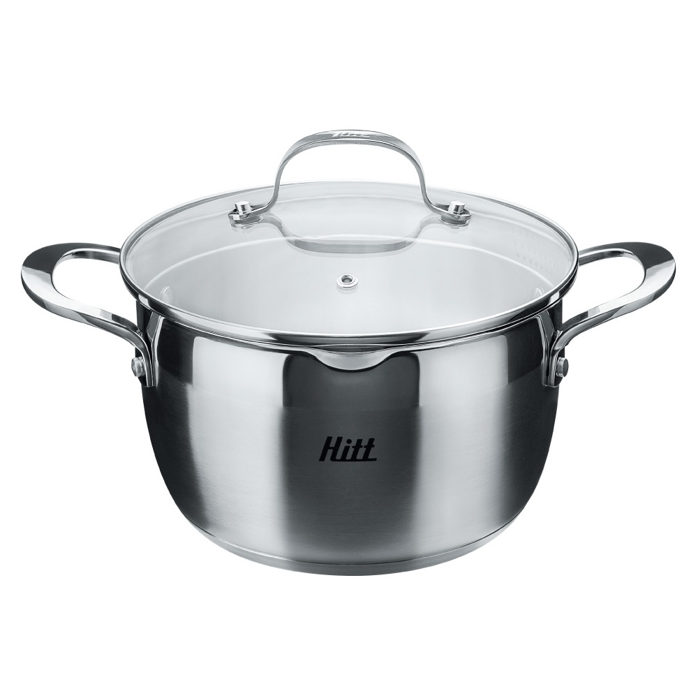 Кастрюля Hitt Sonate относится к серии PREMIUM. Выполнена из высококачественной стали, имеет тройное штампованное дно с вплавленным алюминиевым диском (толщина 4,5мм). Корпус кастрюли оснащен 2-мя носиками для удобного слива жидкости. Комбинированная полировка снаружи (4/5 - сатиновая, 1/5 - зеркальная), внутри нанесена мерная шкала с отметкой литража. Толщина стенок 0,6 мм. Цельные ручки из нержавеющей стали. Стеклянная крышка с ободом-дуршлагом для слива.Подходит для всех типов плит, включая индукционную.