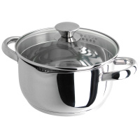Кастрюля из нержавеющей стали, капсулированное дно, крышка стекло с пароотводом.