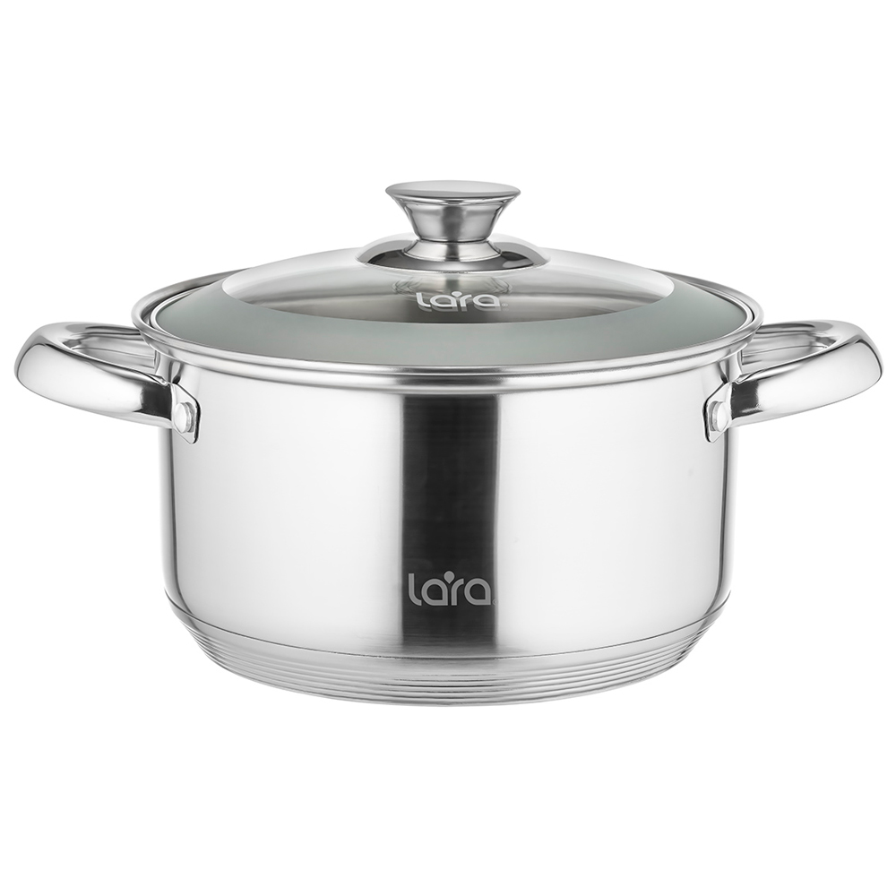 Кастрюля Lara «Чикаго» LR02-773 объемом 3,4 л подходит для разных плит, включая индукционные. Для ее изготовления используется нержавеющая сталь, отличающаяся высокой прочностью. Модель размером 20 x 11,5 см не деформируется от ударов, а пища не прилипает к поверхности, что позволяет не добавлять масло при готовке. Материал не выделяет вредные вещества при взаимодействии с теплом, поэтому блюда, приготовленные в кастрюле, сохраняют полезные микроэлементы исходных продуктов.