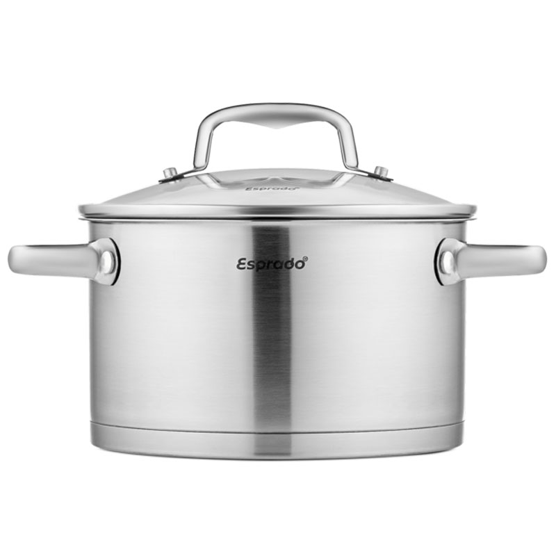 Кастрюля с крышкой Esprado Llamero размером 20х11,5 cм из высококачественной нержавеющей стали #304 с крышкой G-shape из термостойкого стекла с паровыпуском. Объём: 3,6 л.