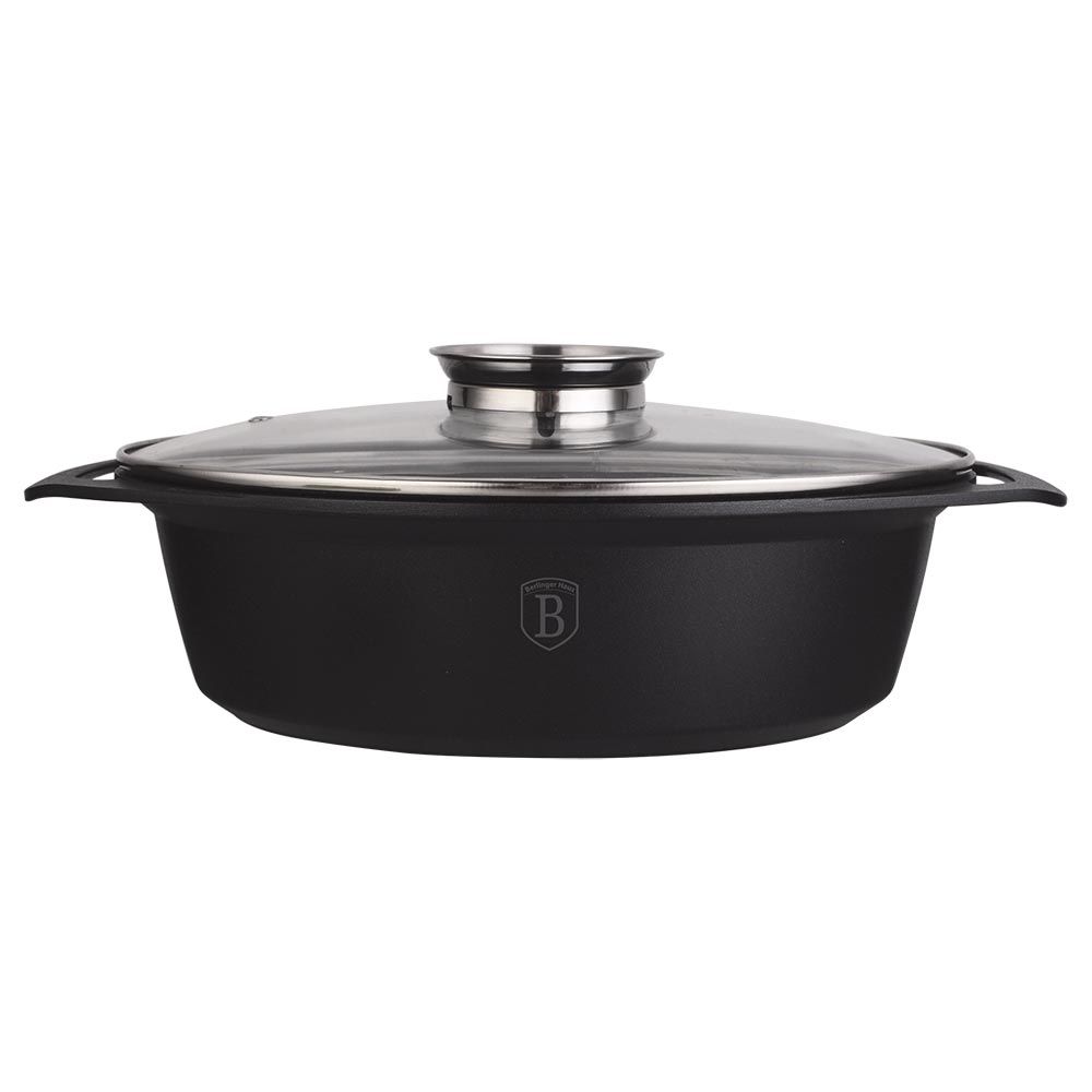 Гусятница "Granit Diamond Line" выполнена из углеродной стали. Изделие не вступает в реакцию с готовящейся пищей, а потому не выделяет никаких вредных веществ, не подвергается воздействию кислот и солей.