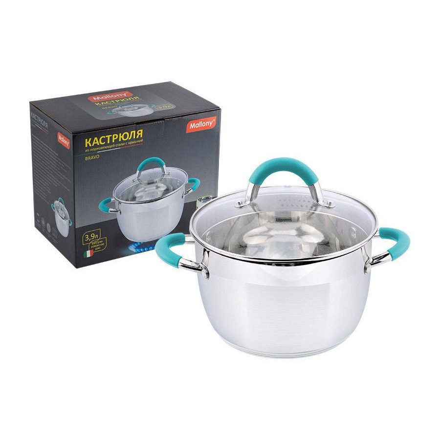Кастрюля Mallony Bravo со стеклянной крышкой, изготовленная из стали, будет уместна на любой кухне. Оснащена удобной крышкой-дуршлагом, а также удобными ручками с покрытием из силикона.