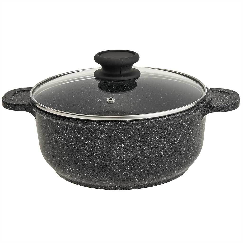 Кастрюля «Орион» из литого алюминия подходит для ежедневного приготовления разнообразных блюд. Изделие произведено в соответствии со строгими нормами технического контроля. Особенности: покрытие Greblon C2+ защищает от пригорания; удобные ручки облегчают хват; кастрюля имеет стеклянную крышку с пароотводом; поверхность изделия легко отмывается; благодаря качественной проточке дно прогревается максимально быстро. Кастрюлю можно мыть в посудомоечной машине. Подходит для всех типов плит, кроме индукционных. Толщина стенки — 3,5 мм, дна — 5 мм. Не содержит PFOA.