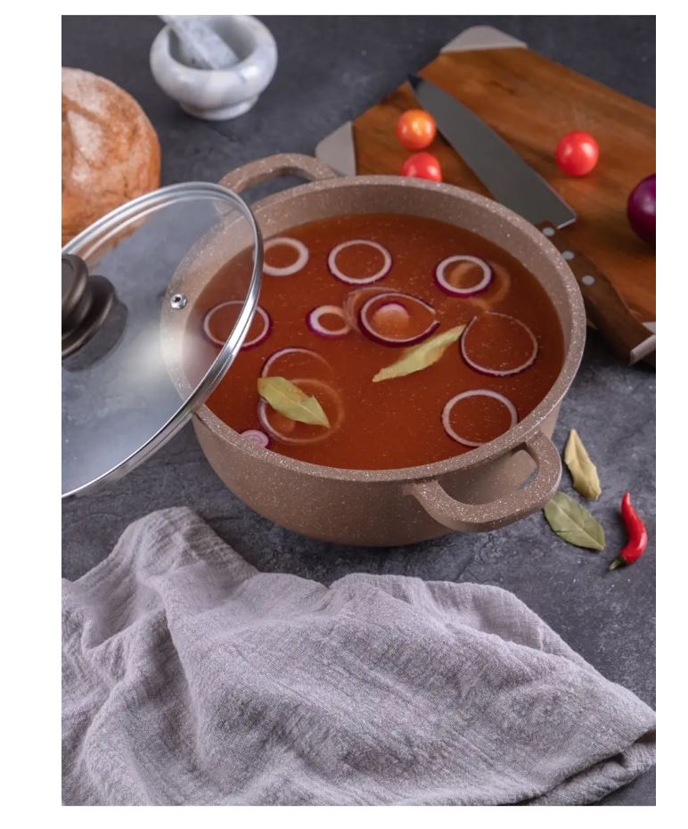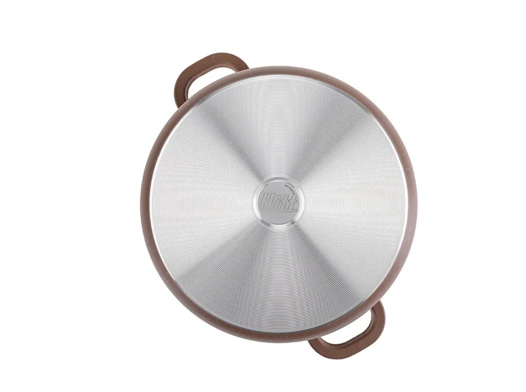 Кастрюля Hitt Maroon изготовлена из литого алюминия методом ручного литья. Обладает прекрасными техническими характеристиками: толщина дна 5 мм, толщина стенок 3,5 мм, высокий борт 9,5 см, отличное двухслойное антипригарное покрытие немецкой марки Greblon C2+. Рекомендуется для ежедневного интенсивного использования. Характеризуется повышенной износостойкостью. Толстые стенки и дно кастрюли удерживают температуру нагрева.