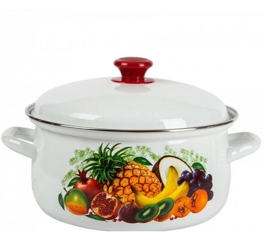 Кастрюля 3л сферическая, с металлическим ободком, с рисунком.