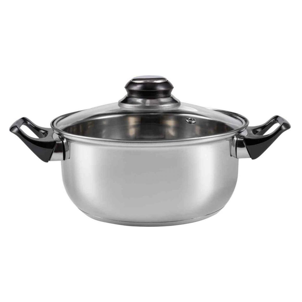 Kорпус кастрюли выполнен из высококачественной нержавеющей стали, имеет внутреннюю и внешнюю зеркальную полировку и 5-слойное термоаккумулирующее (капсулированное) дно. Ручки из пластика. Крышка из термостойкого стекла. Ободок крышки из нержавеющей стали против сколов и трещин. Подходит для всех типов плит кроме индукционных. Подходит для мытья в посудомоечной машине. Kастрюля отлично подойдет для приготовления каши, компота или разогрева на плите супа. За счет прочного стального корпуса кастрюля не деформируется в процессе эксплуатации. Стеклянная крышка из термостойкого стекла плотно прилегает к краям посуды, имеет отверстие для выхода пара и удобную ручку. Кастрюля с крышкой подходит для приготовления супа, компота, каши и других блюд. С внешней стороны кастрюля имеет стильный дизайн, который впишется в любую кухню.