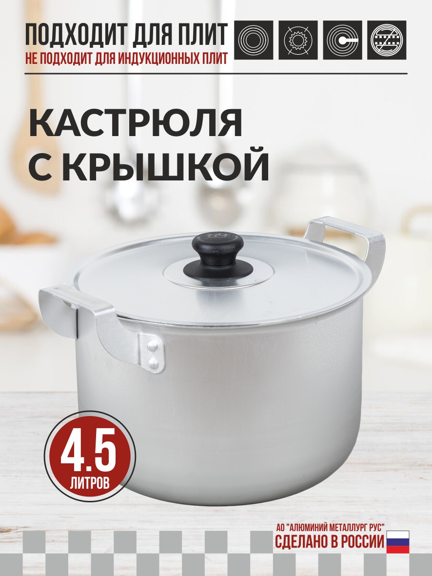 Кастрюля "Калитва" 4,5 л изготовлена из высококачественного матового листового алюминия.