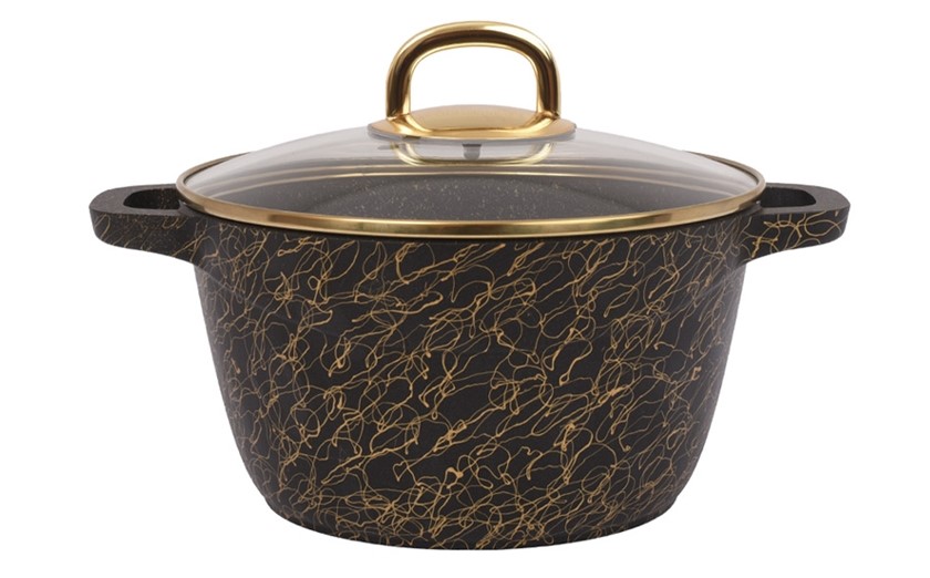 Функциональность посуды увеличивает стеклянная крышка из термостойкого стекла, благодаря которой можно наблюдать за приготовлением пищи и не снимать крышку каждый раз, теряя при этом изрядное количество тепла. Стеклянную крышку не рекомендуется использовать в духовом шкафу из-за возможного потемнения покрытия под золото.