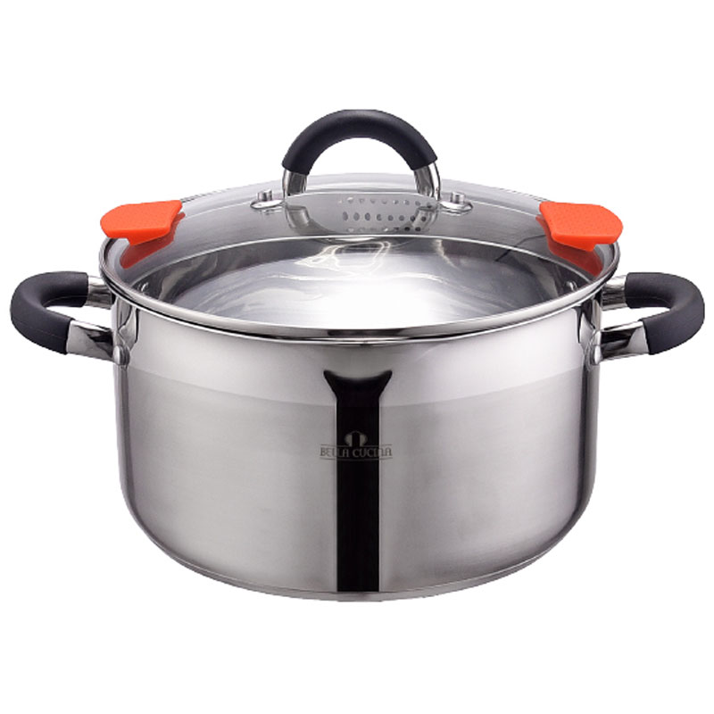 Эргономичная ненагревающаяся клепаная ручка с силиконовыми накладками, глянцевая полировка, термоаккумулирующее индукционное дно, для моментального нагревания и сохранения тепла