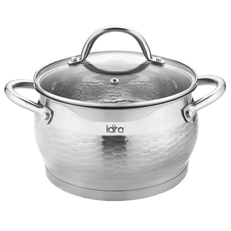 Кастрюля "Lara"Milano" изготовлена из высококачественной нержавеющей стали. Благодаря многослойному капсульному дну происходит равномерное распределение температуры по всей поверхности, что обеспечивает быстрое приготовление. Ручки прикреплены методом клёпочной фиксации.