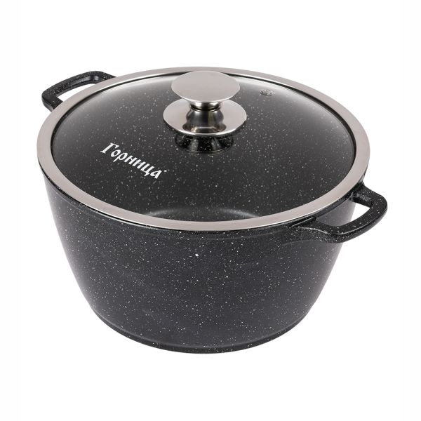 Антипригарная кастрюля Горница Гранит Induction изготовлена из пищевого алюминия без канцерогенных веществ.