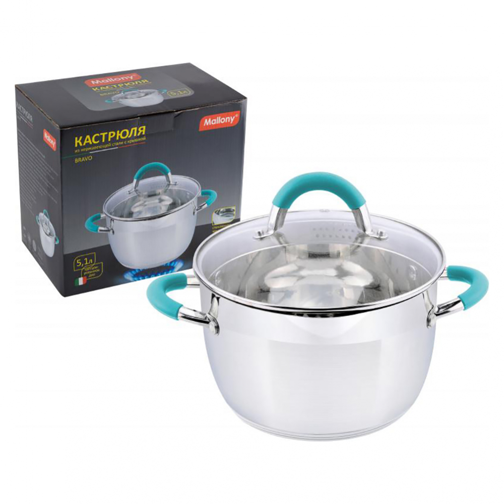 Кастрюля Mallony Bravo со стеклянной крышкой, изготовленная из стали, будет уместна на любой кухне. Оснащена удобной крышкой-дуршлагом, а также удобными ручками с покрытием из силикона.