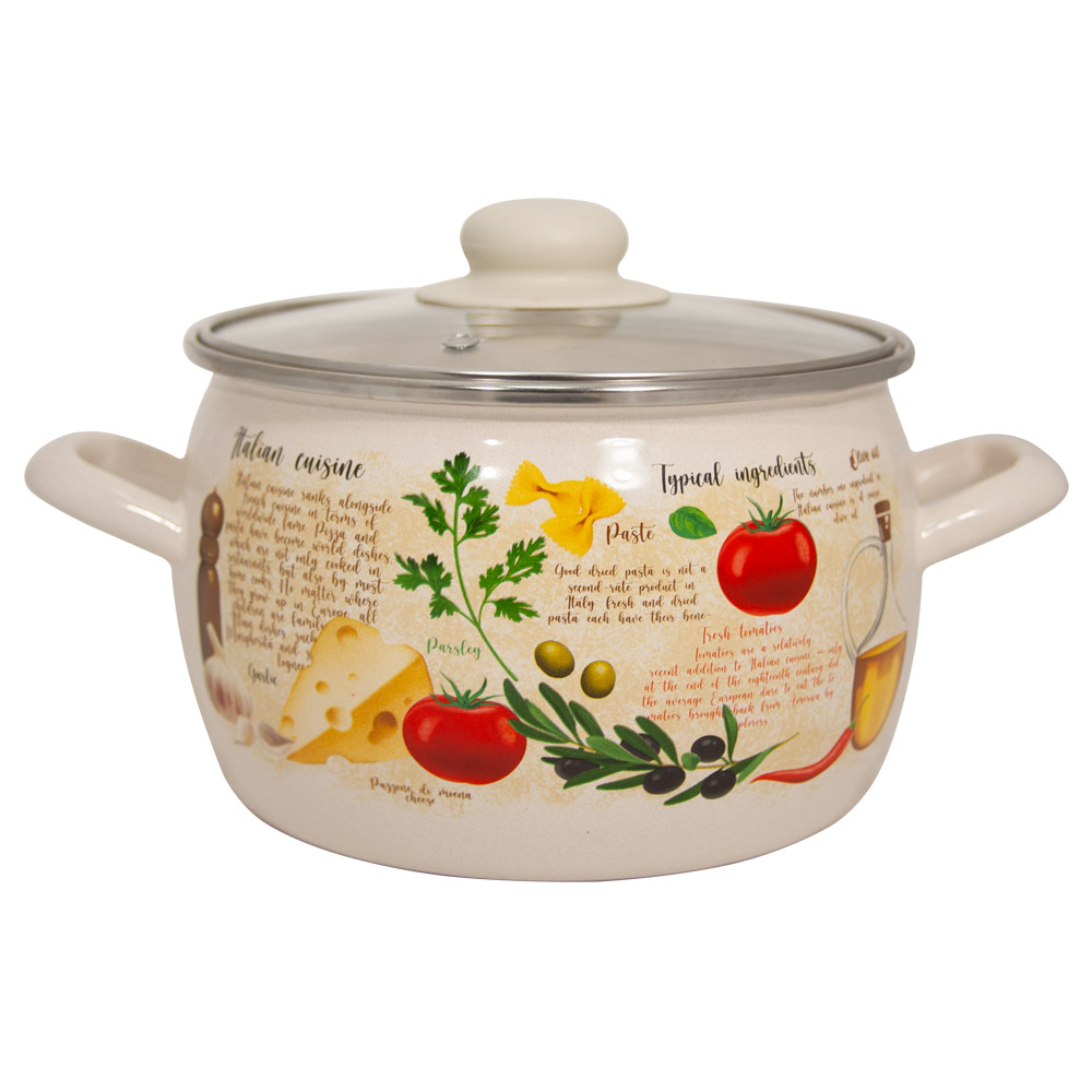 Кастрюля выполнена из высококачественной стали с эмалированным покрытием. Такое покрытие защищает сталь от коррозии, придает посуде гладкую стекловидную поверхность и надежно защищает от кислот и щелочей. Эмаль не вступает во взаимодействие с продуктами и не искажает их вкусовые качества. Прочный стальной корпус обеспечивает эффективную тепловую обработку пищевых продуктов и не деформируется в процессе эксплуатации. С внешней стороны кастрюля оформлена изящным рисунком.Подходит для всех плит, включая индукционные.Можно мыть в посудомоечной машине.