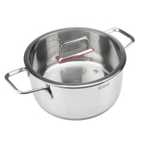 Кастрюля выполнена из нержавеющей стали 18/10. Капсулированное дно для лучшего распределения тепла. Толщина стенок - 0,6 мм. Толщина дна - 2,8 мм. Полировка снаружи - зеркальная, внутри - зеркальная. Плоская крышка из жаропрочного стекла со стальным ободом с отверстием для выхода пара. Ручка на точечной сварке. Есть отметки литража.