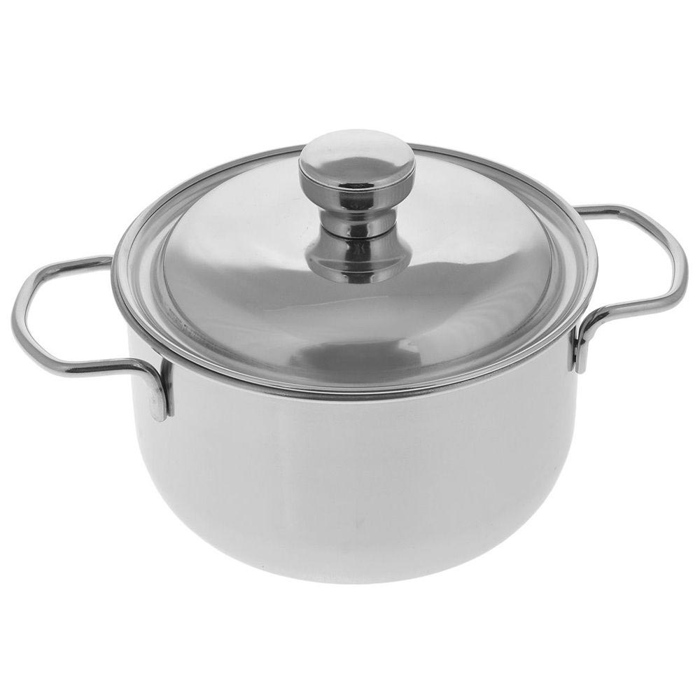 Кастрюля имеет трехслойное тепло распределительное дно, которое обеспечивает быстрый подогрев пищи, сохранение тепла и уменьшение вероятности пригорания пищи.