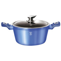 Кастрюля серии Royal blue Metallic Line со стеклянной крышкой выполнена из кованого алюминия.