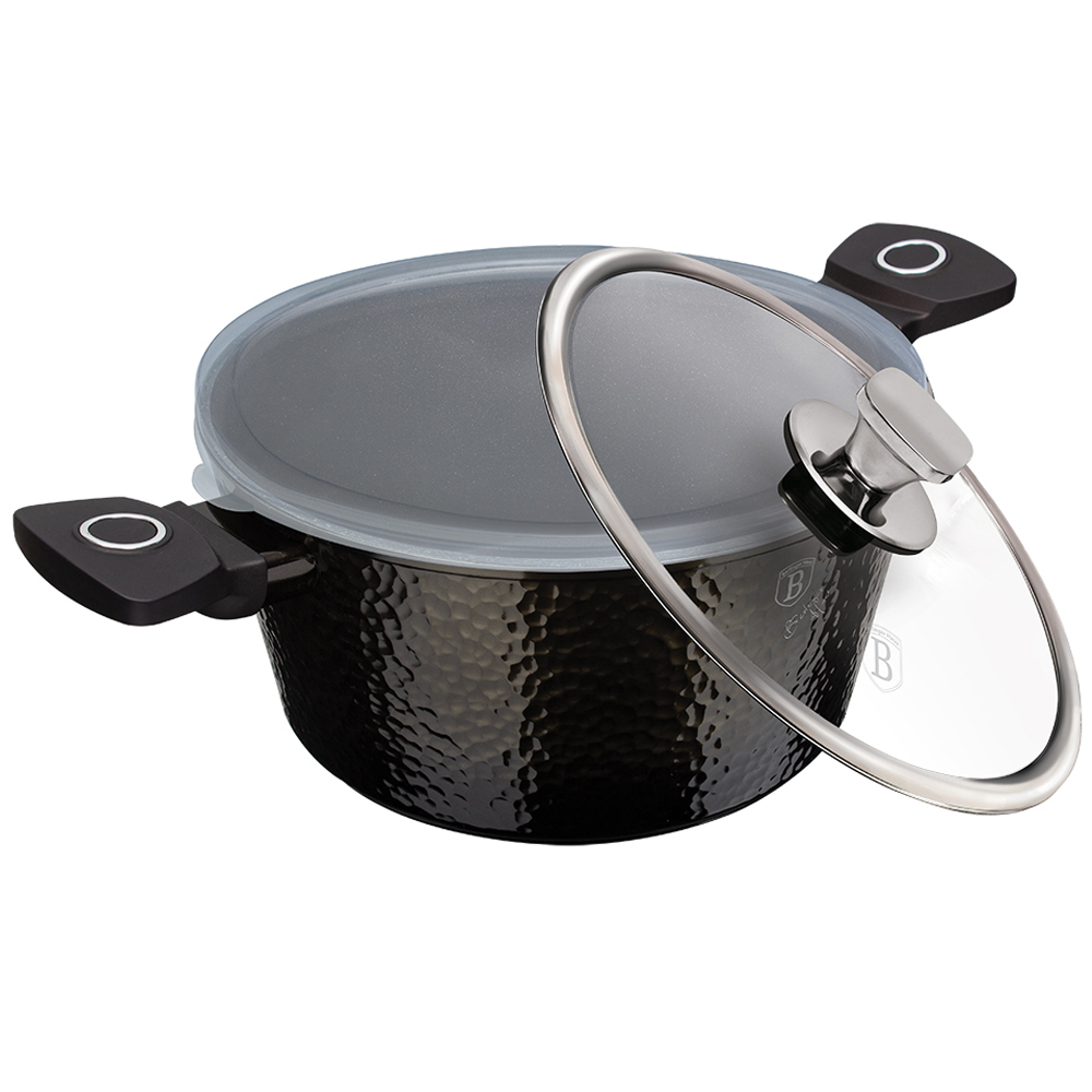Кастрюля со стеклянной крышкой 28см, 28х12,4 см, объем 6,1 л, кованый алюминий, толщина стенок 0,5 см.