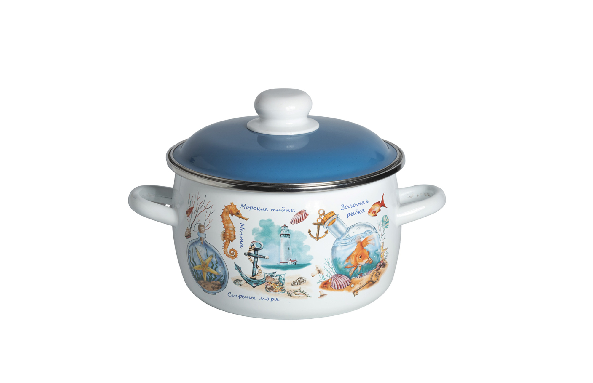 Кастрюля METROT «Золотая рыбка» объёмом 2л — это эмалированная кастрюля с крышкой из жаропрочного стекла. Она подходит для использования на индукционных плитах и в посудомоечной машине.