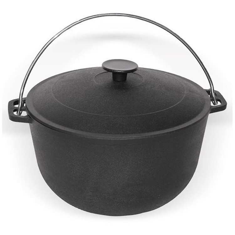 Литой чугунный казан используется при приготовлении пищи на медленном огне, отваривания на пару и сохранения готовых блюд горячими. Идеально подойдет для тушения мяса и овощей, а также приготовления гарниров. Имеет антипригарное покрытие, поэтому вам больше не стоит беспокоиться, что ваша пища прилипнет ко дну.
