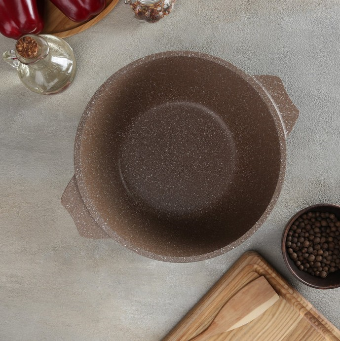 Покрытие разработано на водной основе без перфтороктановой кислоты, не выделяет вредных веществ. Легкость мытья. Литой толстостенный корпус не подвержен деформации, а утолщенное дно позволяет равномерно распределить тепло по всей поверхности.
