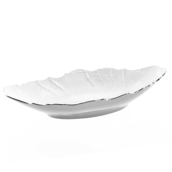 Фарфоровая хлебница "Бернадотте Платина 2021" - пример изысканной сервировочной тарелки дя подачи хлеба, багета, булочек.