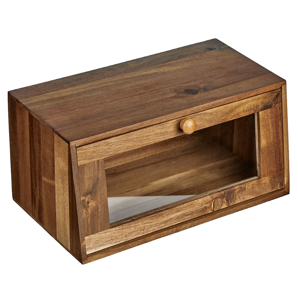 Хлебница из акации идеально подойдет для хранения различных хлебобулочных изделий или выпечки. Механизм крышки надежен и долговечен, как и вся конструкция. Этой хлебницей вы не только сохраните свежесть хлеба, но и украсите интерьер кухни.