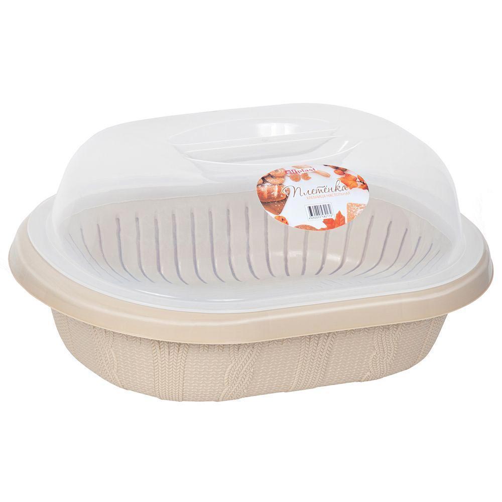 Хлебница настольная "Плетенка", изготовленная из пищевого пластика, обеспечивает идеальные условия хранения для различных видов хлебобулочных изделий, надолго сохраняя их свежесть.