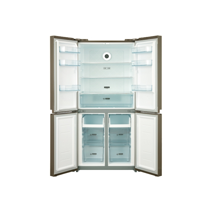 Особенность холодильника в реализованной системе No Frost. Благодаря этому модель не нуждается в разморозке, что упрощает эксплуатацию. На одной из дверей имеется дисплей с индикацией температуры.