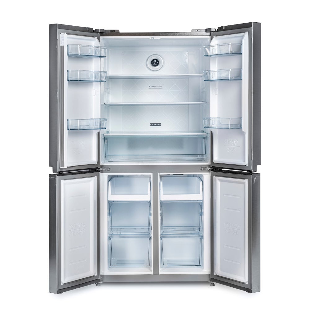 Холодильник Centek CT-1755 имеет размер 83,3x177,5x65,5 см. Вместительный холодильник предназначен для большой семьи. Створчатая конструкция дверей: для открывания используются 4 дверцы. В нижней части есть морозильная камера, которая разделена на 2 изолированных друг от друга отсека с общим объемом 153 л. Общий объем аппарата соответствует 450 л.