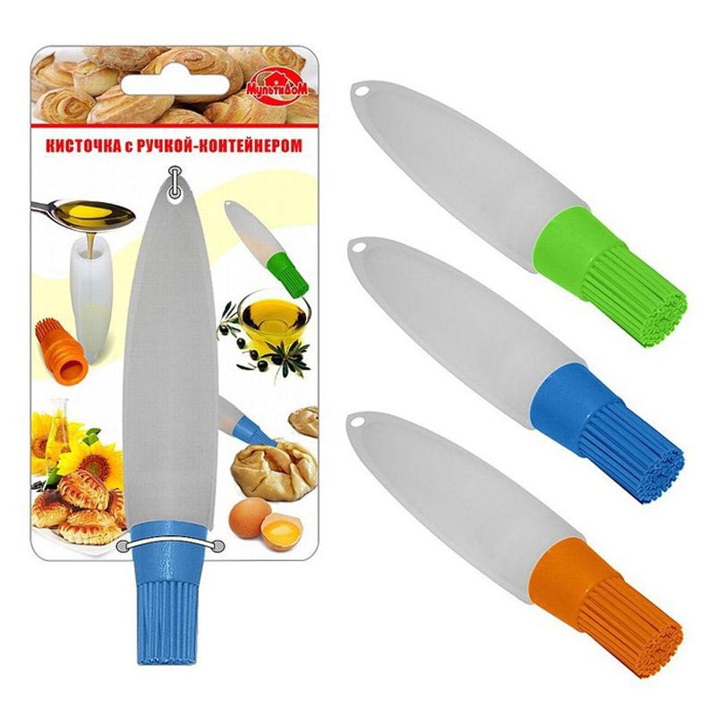 Силиконовая кисточка с ручкой-контейнером предназначена для смазывания форм для запекания, противней, сковородок растительным маслом.