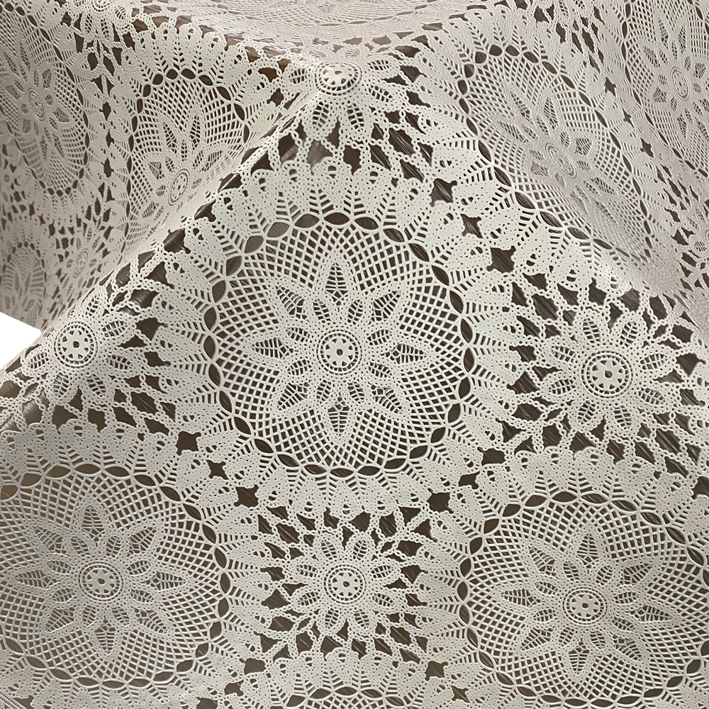 Качественная столовая клеенка ажурная без основы в упаковке. Клеенка однотонная из мягкого ПВХ с вырубкой. Плотность клеенки высокая 350г на м2.