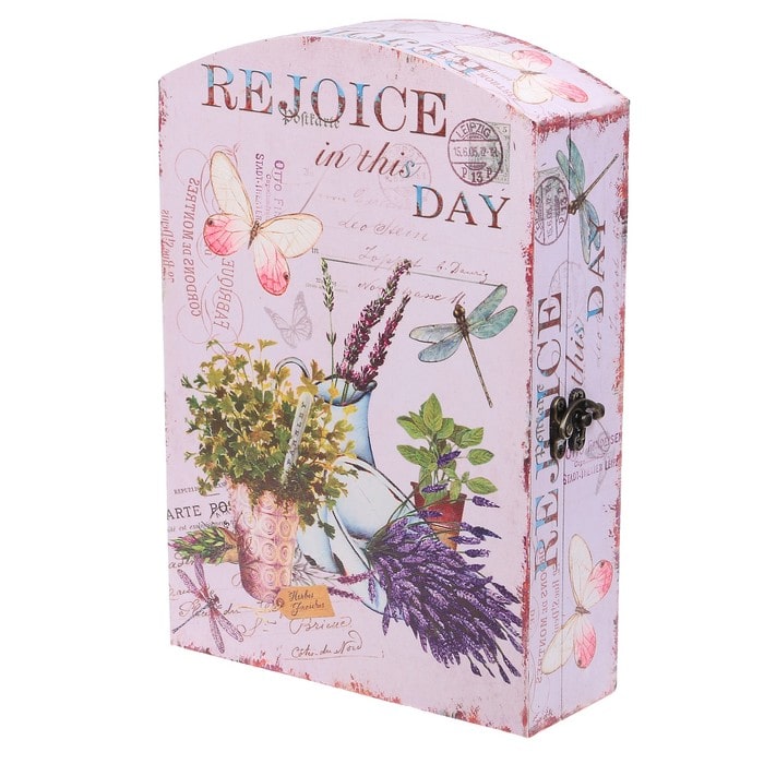 Ключница закрытая изготовлена из дерева, текстиля и металла. Модель рассчитала на 6 пар ключей.