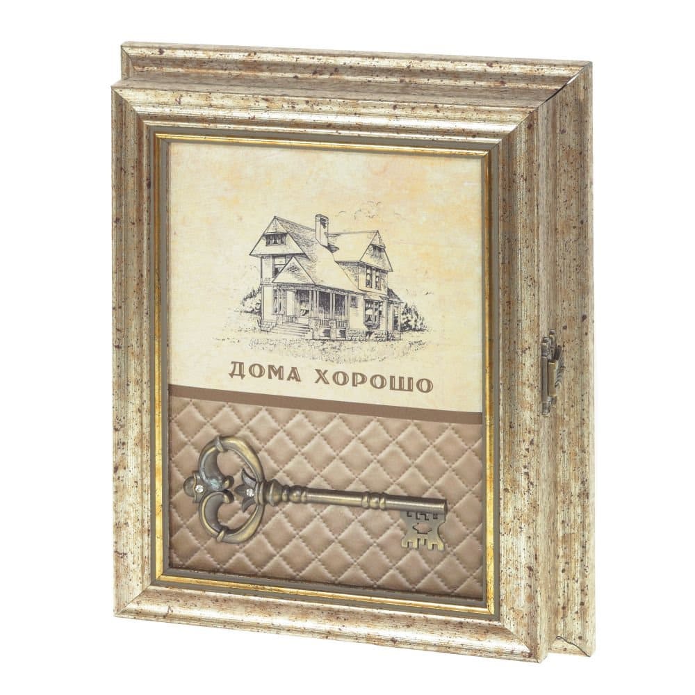 Ключница закрытая изготовлена из полимерных материалов, дерева и металла. Декорирована ключом и картинкой дома. Изделие рассчитано на 5 пар ключей. Прикрепите ее на удобное место в прихожей, и Ваши ключи всегда будут под рукой.