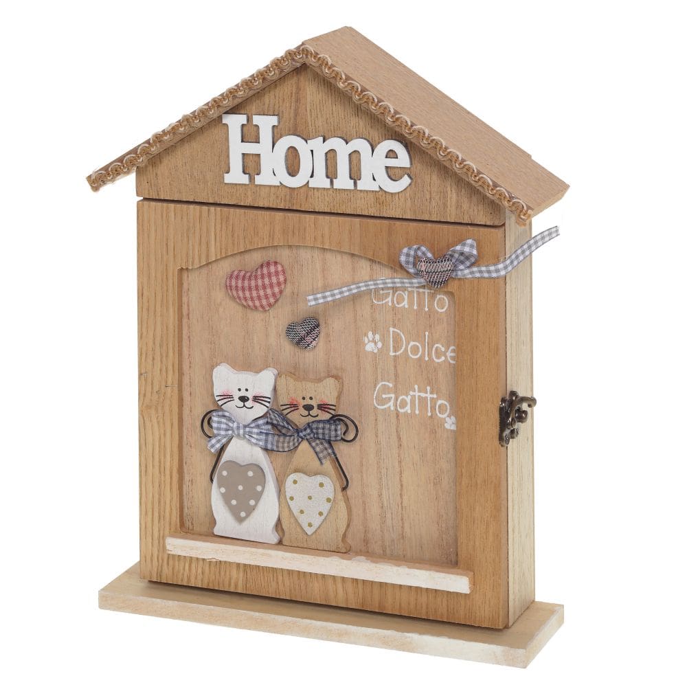 Ключница "Котики" изготовлена из дерева и металла.