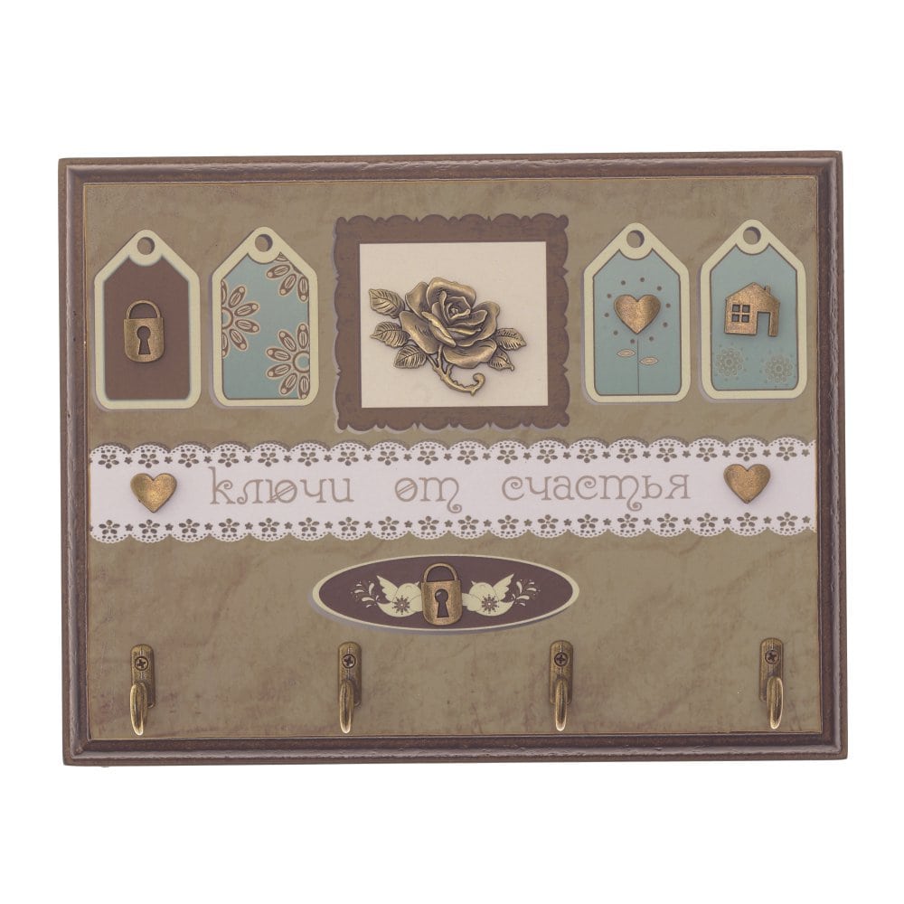 Ключница открытая с четырьмя металлическими крючками изготовлена из дерева.