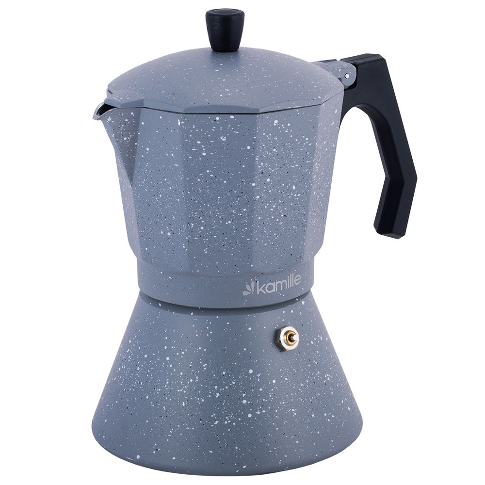 Гейзерная кофеварка 450 мл. Kamille KM-2518GR с покрытием серый мрамор, индукция