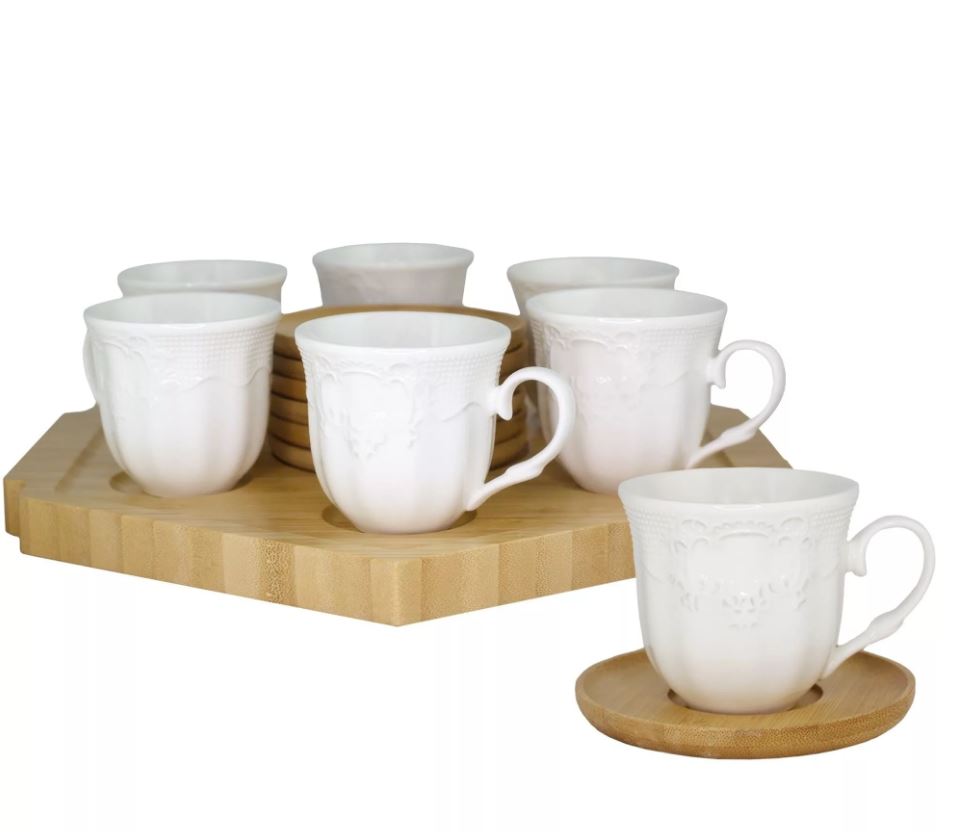 Посуда Lenardi характеризуется великолепным дизайном и прочностью. Все стадии технологического процесса контролируются квалифицированными специалистами, поэтому качество не вызывает сомнений. Кофейный набор из высококачественного фарфора и бамбуковой подставки позволят украсить любой стол.