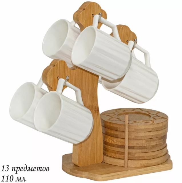 Посуда Lenardi характеризуется великолепным дизайном и прочностью. Все стадии технологического процесса контролируются квалифицированными специалистами, поэтому качество не вызывает сомнений. Кофейный набор из высококачественного фарфора и бамбуковой подставки позволят украсить любой стол.